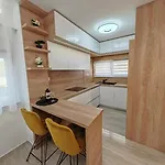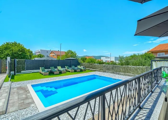 Die Badezimmer in der 3-Zimmer- Villa Nikoma Dicmo sind mit einer Dusche ausgestattet. Auch gibt es einen Haartrockner, einen Wäschetrockner und Handtücher für den Komfort der Gäste.